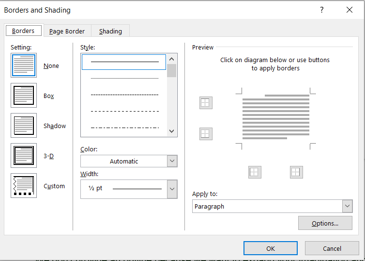 If you prefer to create a border manually, you can do it using the word formatting tools. Here are the steps to follow:
