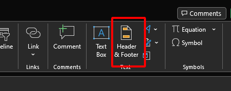 Step 2: Click on "Header & Footer" in the "Text" group.
