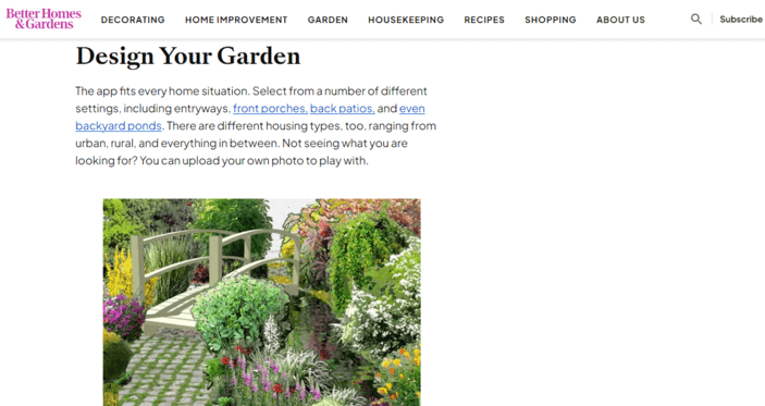 Plan-a-garden tool is a tool provided by Better homes and Gardens. Using this tool, you can design your dream garden and see how you can design the landscape structure of the backyard of your home. Whether you are creating a design plan for a patio or a welcoming front walk, this software tool can help you put the shapes and structures together.