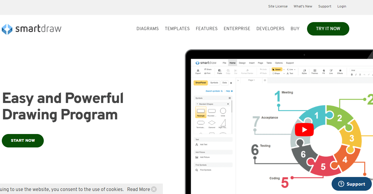 SmartDraw is a flowchart and landscape design software product that helps you create detailed floor plans and diagrams. Moreover, you can also create organizational charts for corporate organizations by using this tool.