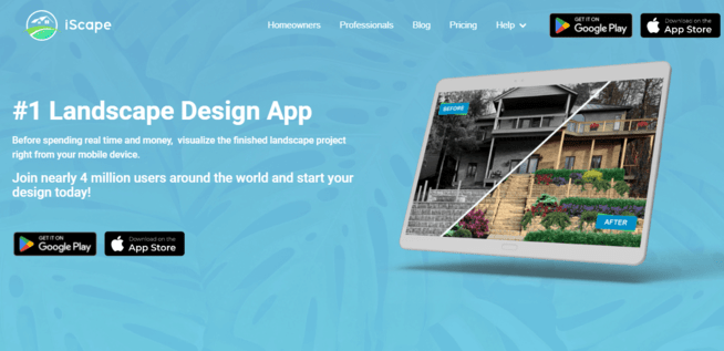 iScape is an iPad and iPhone landscape design app with a free plan for the hobbyist or DIY landscape design and a pro plan for professional landscapers. Using this tool, you can design your landscape by adding different elements and structures, such as plants, benches, and landscapes.