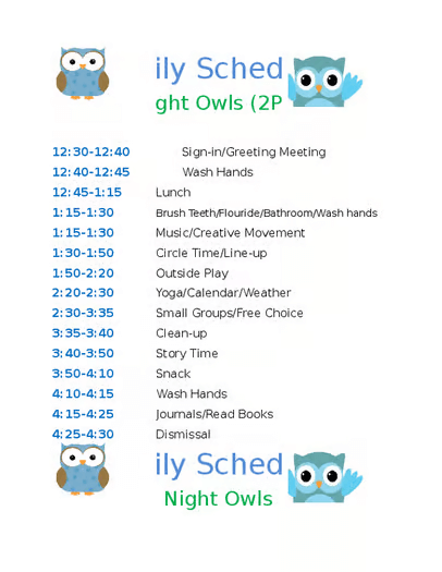 5. Preschool Daily Schedule Owl Theme [Word]