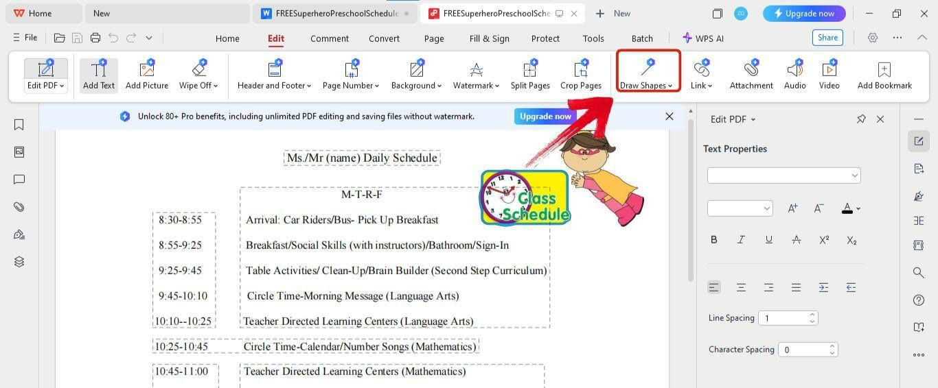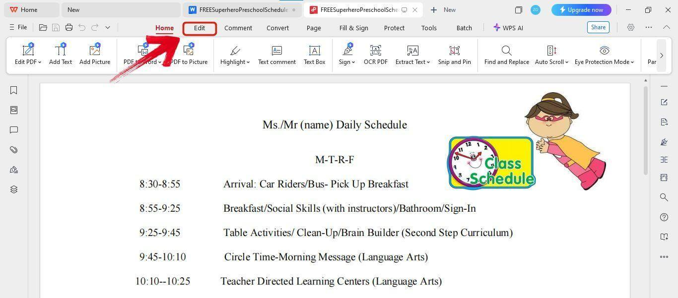 WPS PDF Editor makes customizing preschool schedules so easy. Just follow the steps I’ll show you, and then you can easily customize them to your liking.