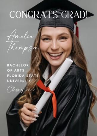 If you wish to highlight the festive aspect of your graduation, then this will suit perfectly. The background photo adds a personal element without the excess clutter. Regardless of whether you’re finishing high school or college, this design is adaptable for any degree of accomplishment. Customizing it is simple, guaranteeing that the design showcases your individual style