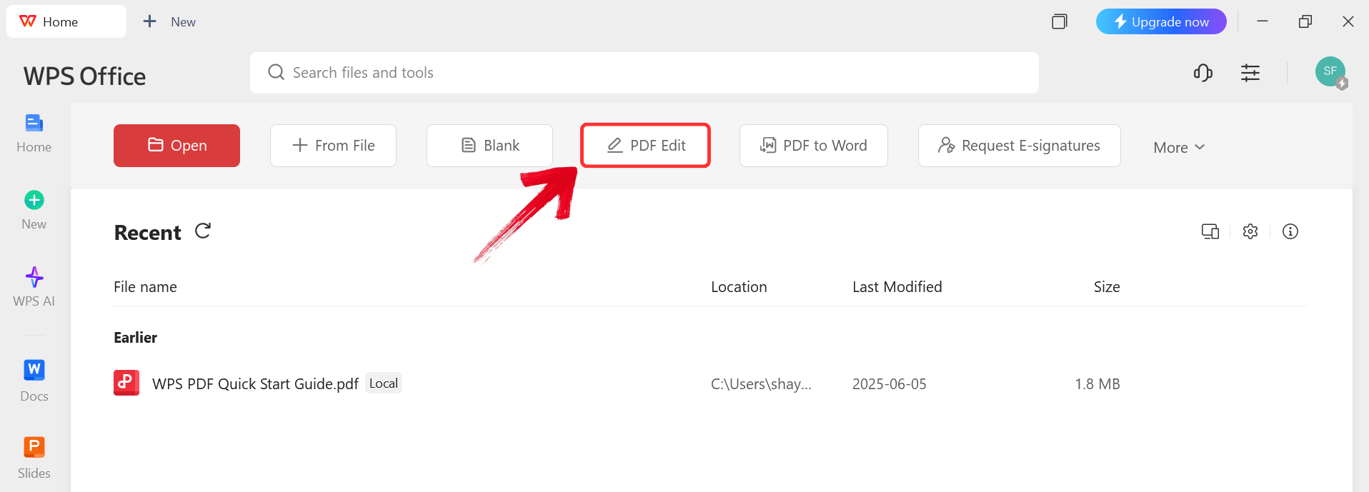 Step 2: Click on "PDF Edit" from the toolbar to enable editing features.