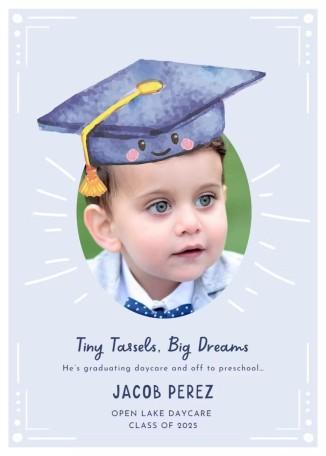 The Small Yet Mighty template is perfect for your little one's move from daycare to preschool. The gentle and light background color gives a peaceful feeling. The cute graduation hat is a lively, joyful element. You can add a picture in the middle and then adjust it to place the hat on top. Then, with a straightforward text with your kid's name, school, and year. This finalizes your design in seconds, making it perfect for parents celebrating their child's accomplishment in a cheerful and fun way.