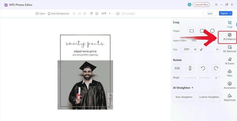 Now, let’s see how you can quickly edit your graduation announcement template in WPS Photo. With simple tools for enhancing images and adjusting colors, you can easily customize your announcement. Here's how