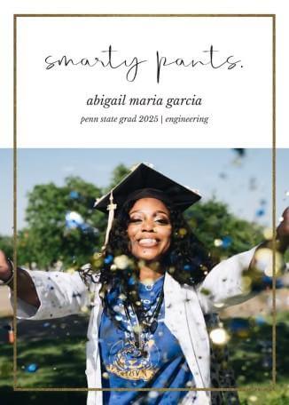 The Smarty Pants template shows a lively and fun design. Ideal for celebrating your significant accomplishment. The unique "smarty pants" font creates a playful environment. In contrast, the golden border balances it out with a stylish look. A picture showered by confetti brings out the festive nature of the event. This template offers enough space for all your details. But keeps the emphasis and focus on you and not the design around you.