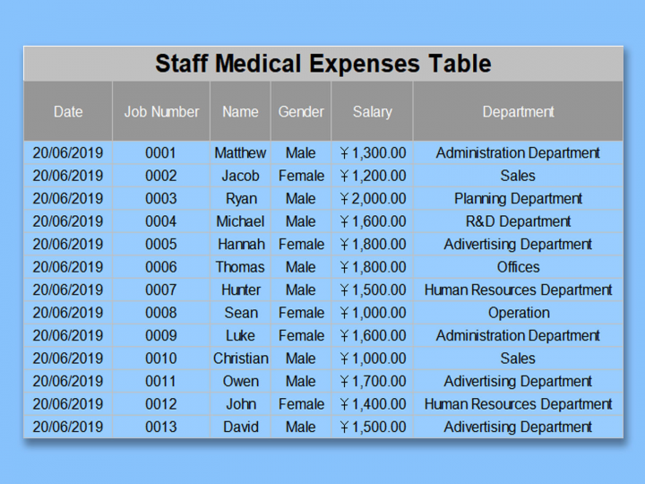 Staff Medical Expenses Table is an Excel spreadsheet designed to track the medical expenses of staff members. The template allows you to enter the name of the staff member, the type of medical expense, the date of expense, and the expense cost. The table automatically calculates the total expenses for each staff member and summarizes the total expenses for all staff members.