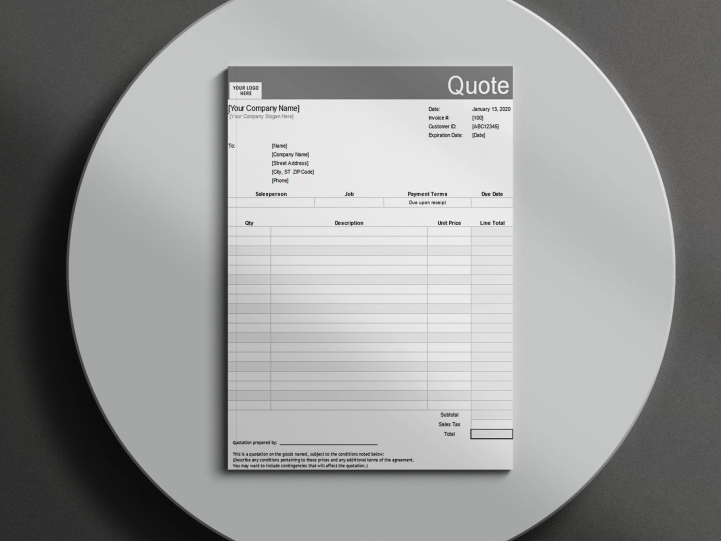 The Simple Grey Invoice Form is a basic template that businesses can use to bill their clients for products or services. The template features a simple design with fields for the business name and address, the client name and address, a description of the product or service, the cost, and the total amount due.
