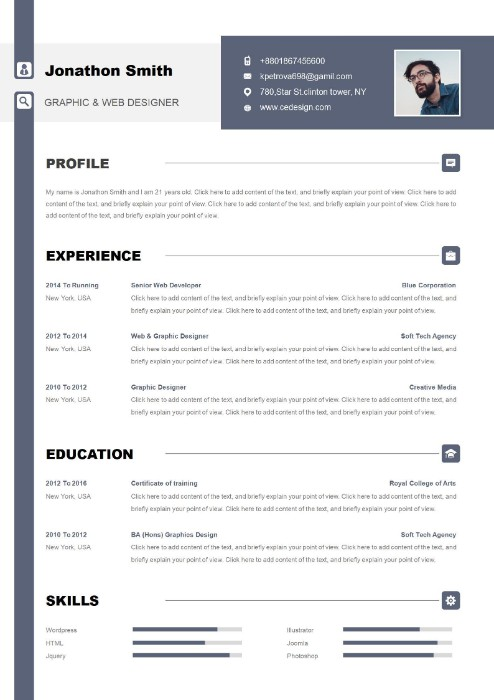 This resume template features a more modern and stylish design, while still keeping the content simple and straightforward.