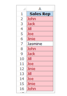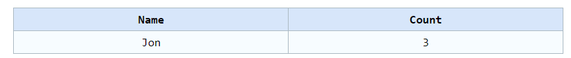 The COUNTIF function will count the times the name appears in your data. For example, Jon appears three times.