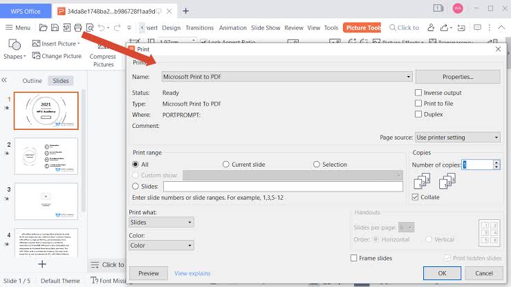 Step 2: After opening the document using WPS Writer, Click on the “Print” icon on the menu bar or use Ctrl + P. Then the print menu pops up