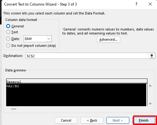 Step 7. Choose the data format for each column (or leave it as "General"), and optionally set column data formats.