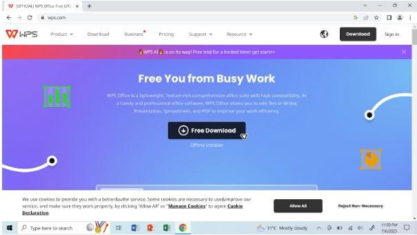 الخطوة 1: قم بزيارة موقع WPS Office على الويب.