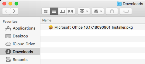 3.انتظر حتى يكتمل التنزيل، ثم افتح Finder وانتقل إلى مجلد التنزيلات. ابحث عن ملف Microsoft Office installer.pkg (قد يختلف الاسم قليلًا)، ثم انقر عليه مرتين.