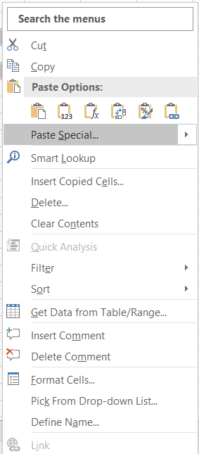 Step 5: Right-click on any of the selected cells and choose "Paste Special."