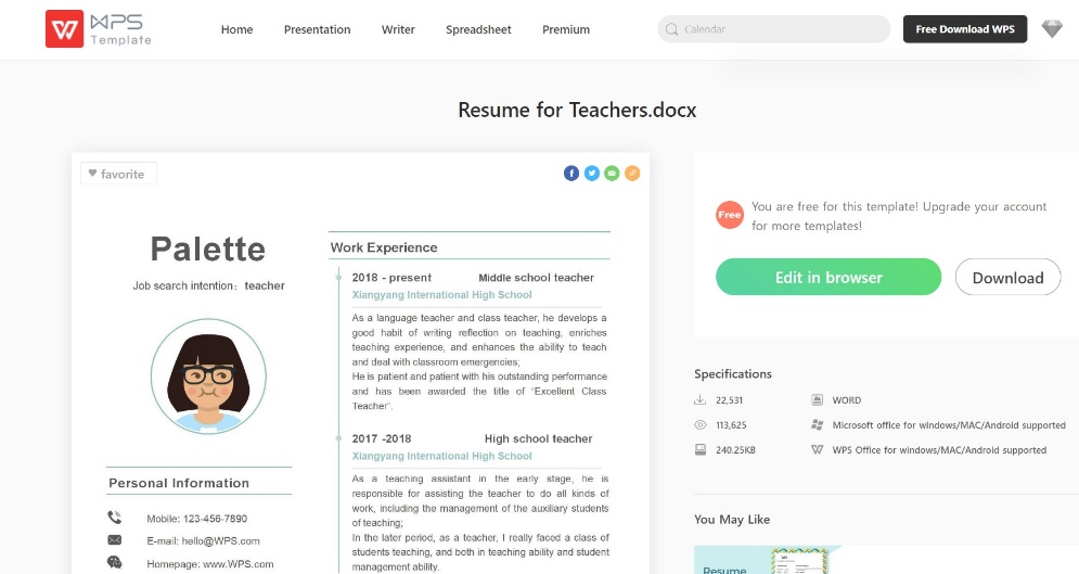 Here, in this article we have listed some points that you can consider while creating your resume. The above given teacher resume formats in Word are some of the best formats for resume and we recommend you to use these formats. To edit these resumes, I recommend you to download WPS Office. After downloading, install and then activate it on your device, you can get the free trial of WPS Office. This will help you easily download more quality templates and make changes to your resume for free.