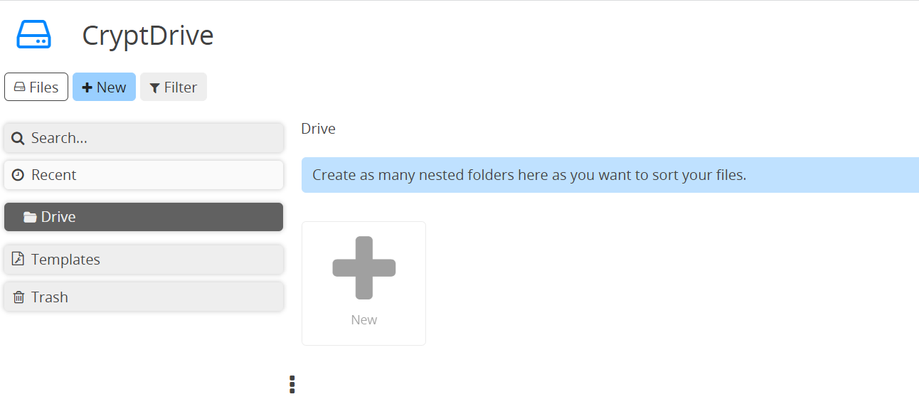 - All Guest user features - Social features (Add contacts for secure collaboration, create a profile, fine-grained access controls) - Upload and share files (Store files in your CryptDrive: images, PDFs, videos, and more. Share them with your contacts or embed them in your documents, up to 25MB) - Complete CryptDrive functionality (Folders, shared folders, templates, tags) - Your documents on all your devices (Access your CryptDrive everywhere with your user account) - Personal storage (1 GB) (Documents stored in your CryptDrive are not deleted for inactivity) |