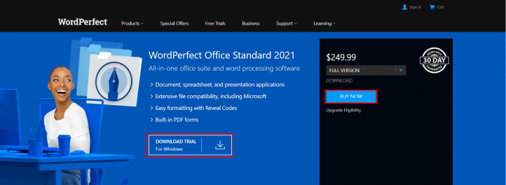 Step 2 Choose the version of WordPerfect you want to download (e.g., WordPerfect Office Standard, Professional, Home & Student).