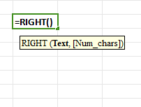 Type "=RIGHT(" and provide the cell reference or text and the number of characters to extract from the right.