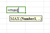 Type "=MAX(" and then select the range of cells you want to find the maximum from.