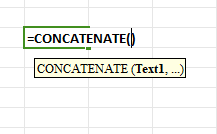 Type "=CONCATENATE(" and then provide the text or cell references you want to join together.