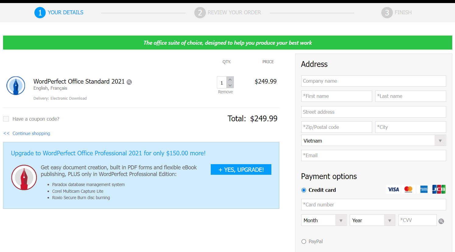 Step 2 Explore the available versions and editions of WordPerfect (Standard, Professional, Home & Student) and select the one that suits your needs.