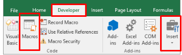 Step 1: In the Developer section, go to the Insert icon that falls under the Controls group.