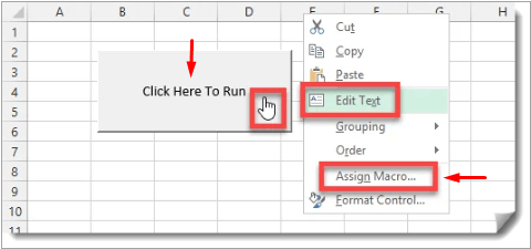 Step 5: Click on Save. Now right-click the Button, then choose Assign Macro.