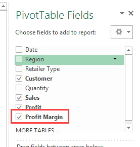 Suppose you have a Pivot Table as shown below and you want to calculate the profit margin for each retailer: