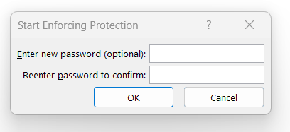 Step 5: Click Yes, Start Enforcing Protection. A box will pop up asking for a password. You can enter a password if you want to allow other people with that password to edit your document.