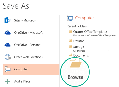 Step 2: Under Save, click Browse to open the Save As dialog box.
