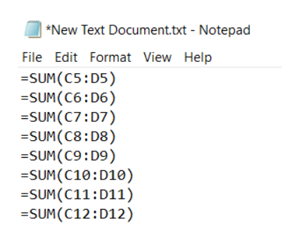Step 4: Copy the content from Notepad and paste it into the cells where you wish to duplicate the exact formulas.