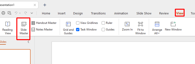 Step 3: In the Master Views group, click Slide Master.