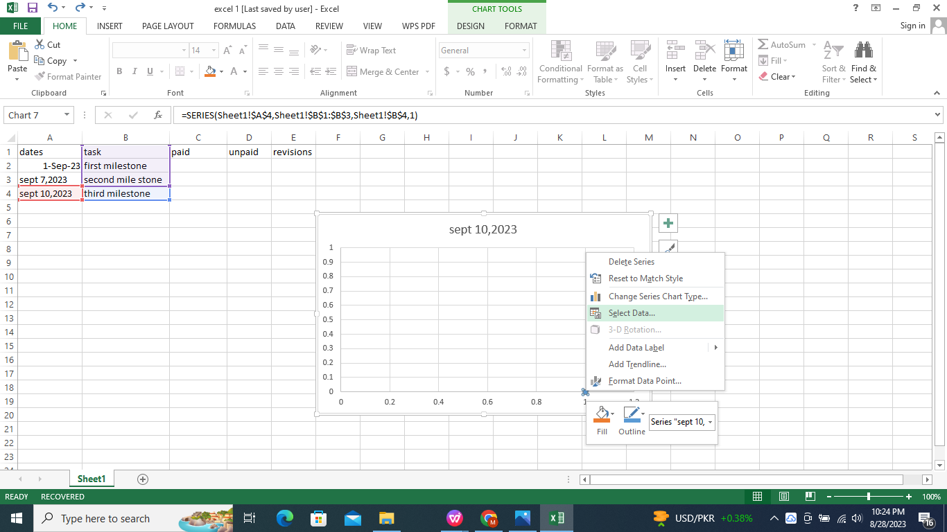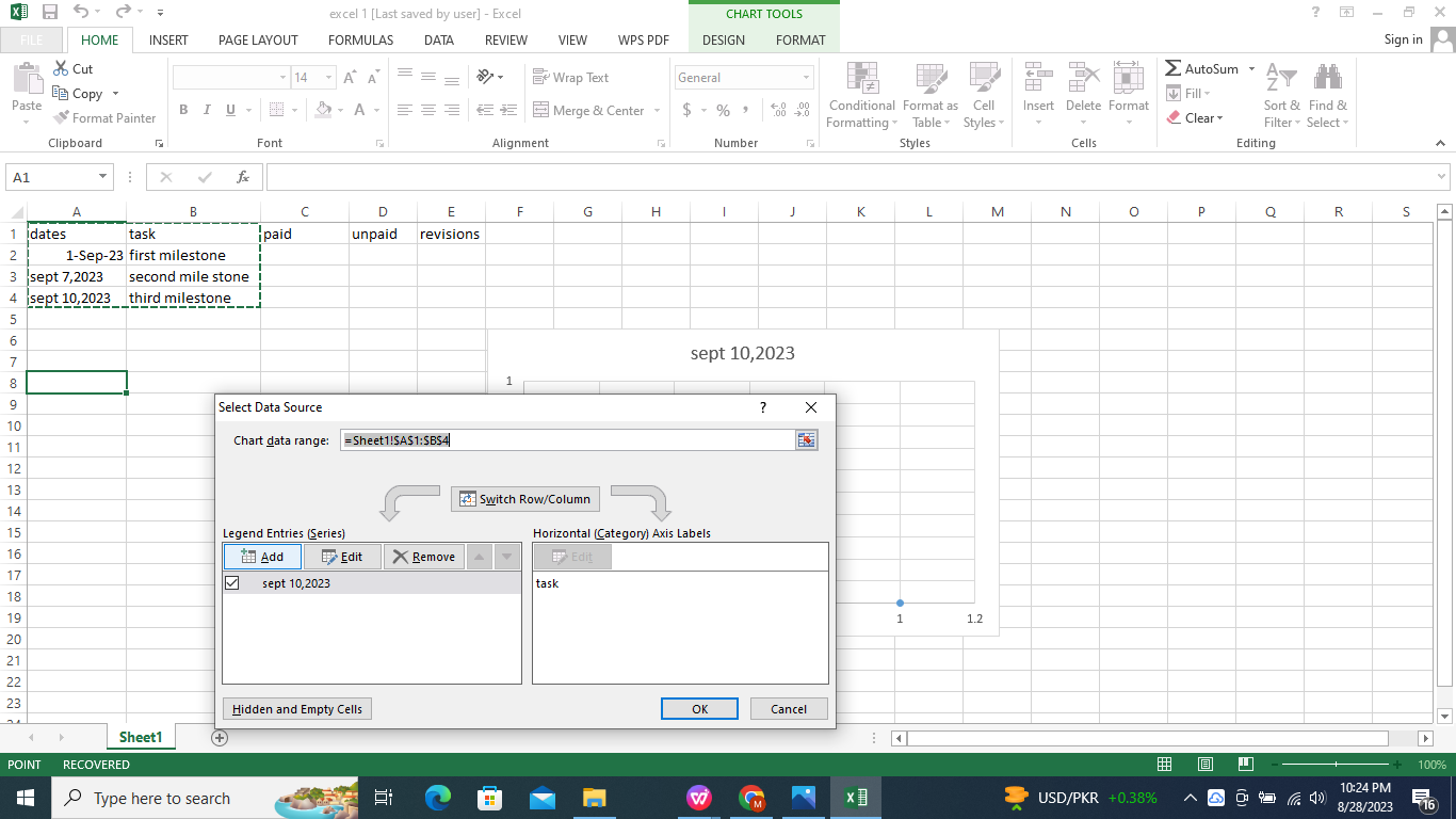 Step 7: For the "Series Name," select the event names you entered in Column A. For the "Series Values," select the corresponding dates in Column B.