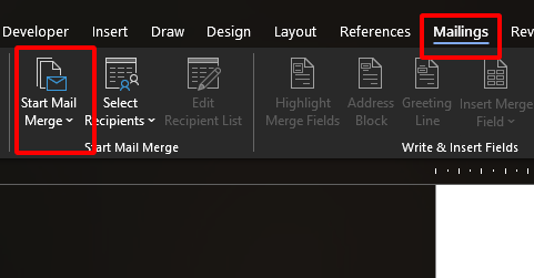 Step 2: Go to "Mailings" > "Start Mail Merge."