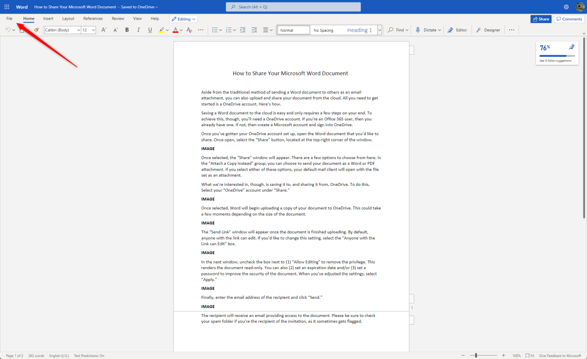 Step 3. Go to the "File" tab.