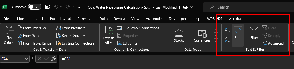 Step 3:Select “Custom Sort” from the “Sort & Filter” group by clicking the button.