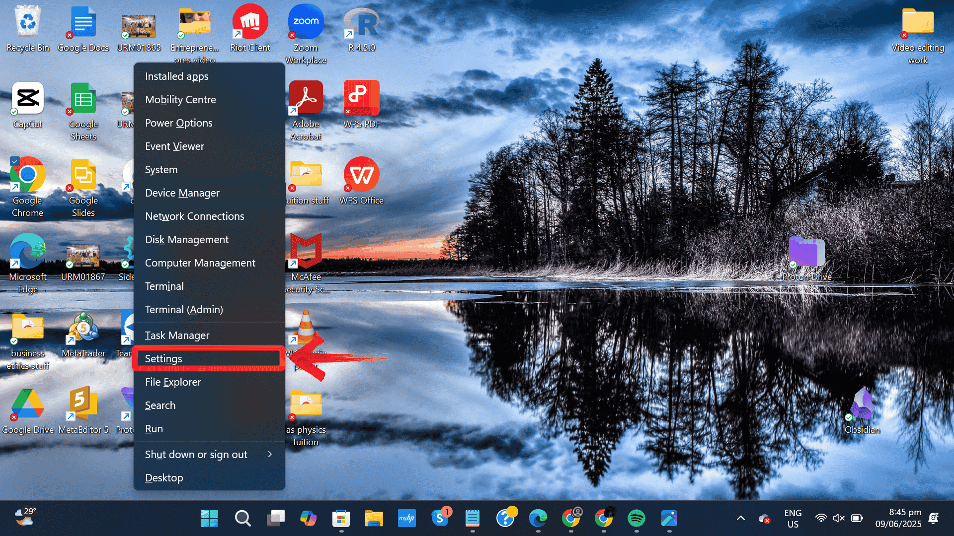 Step 1: First Right right-click your start menu and select settings from the menu that opens up.