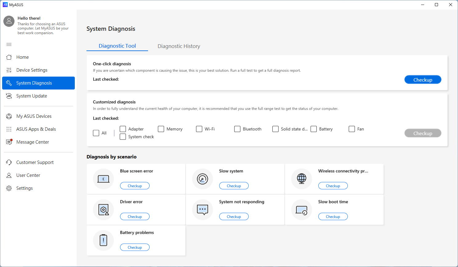 If you own an ASUS laptop, the MyASUS app or Armoury Crate offers built-in diagnostic tools designed to detect and resolve hardware and software issues on your laptop, including keyboard problems. These tools are tailored specifically for ASUS devices, making them a powerful resource.
