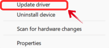 Step 3: Then choose “Update Driver” in the menu that opens up.