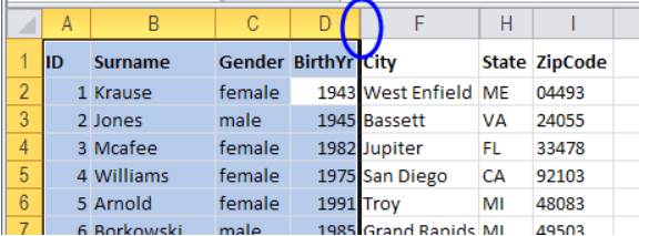 Step 4: For instance, in the screenshot below, hidden column E is empty.