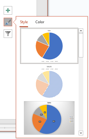 Look for the "Chart Styles" section. Here, you can choose different predefined styles, such as 3D, exploded, or various color schemes.