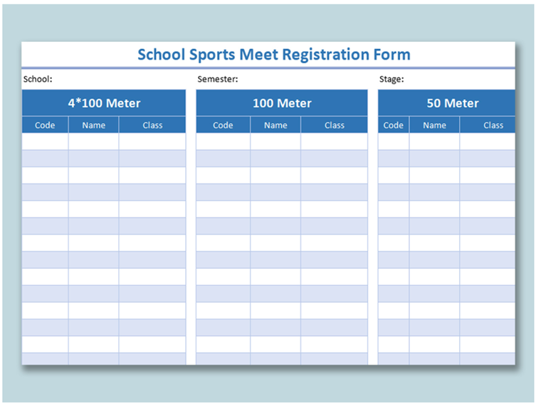 A sports registration meet form is necessary to enroll players for a sports team. You can electronically gather contact information, payment of fees, and parent signatures for any football, basketball, soccer, or softball team using our free School Sports Meet Registration spreadsheet.