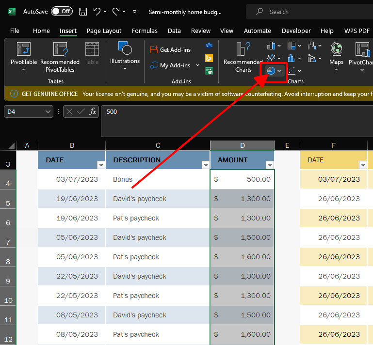Step 3: Insert a Pie Chart
