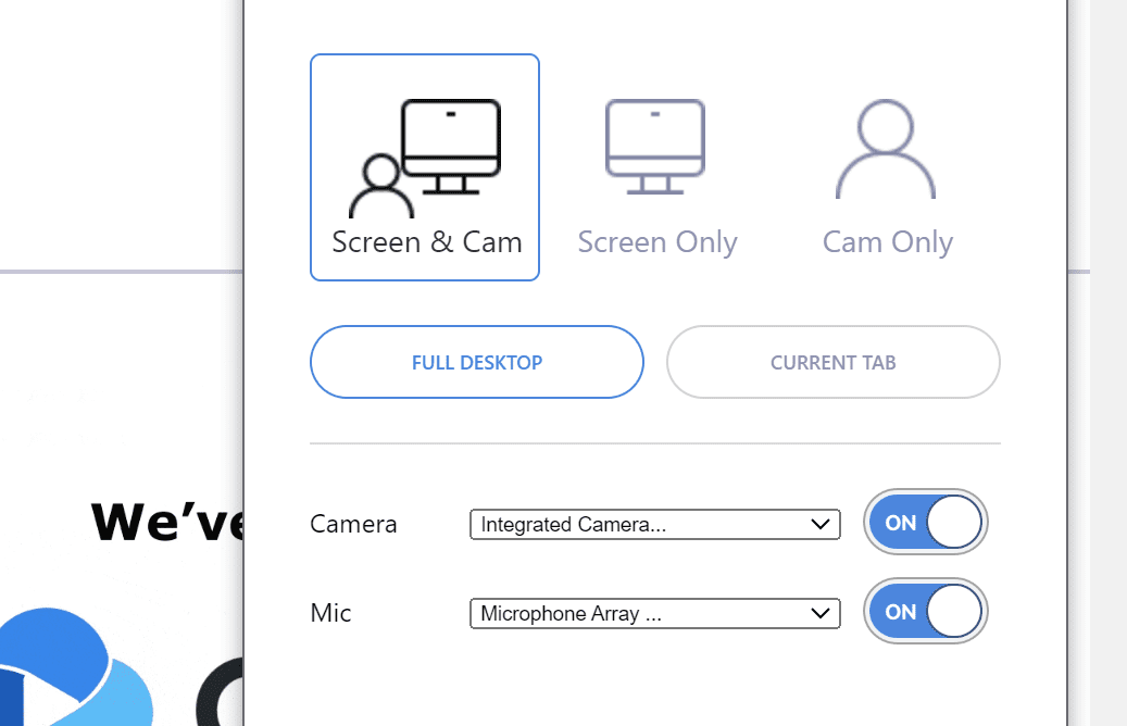 Choose whether to record Screen Only or Screen + Webcam