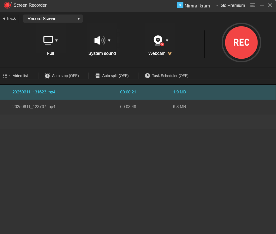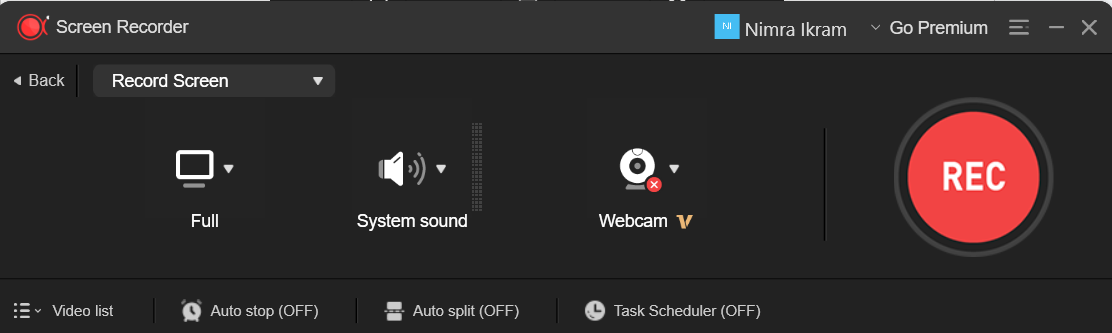 Choose Full Screen or Custom Area on screen recorder