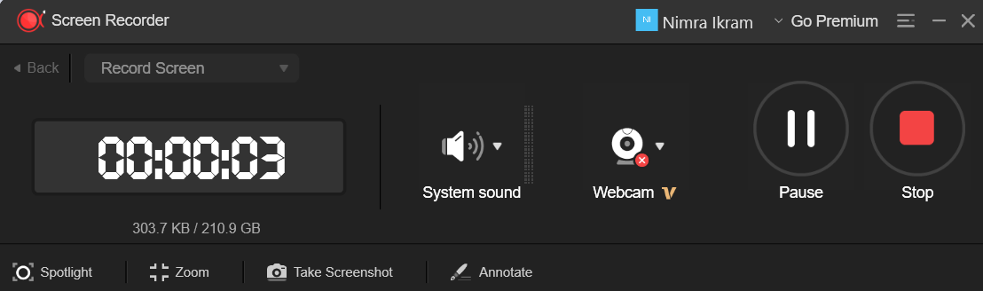 Choose whether to record Screen Only or Screen + Webcam.