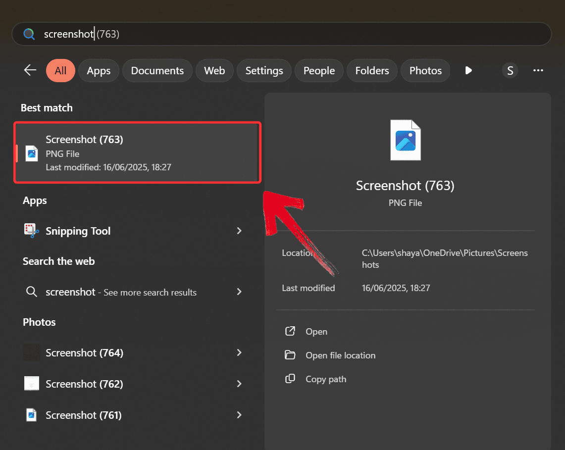 Step 5: This will save the screenshot directly to your Pictures folder under "Screenshots" without needing to paste it anywhere.